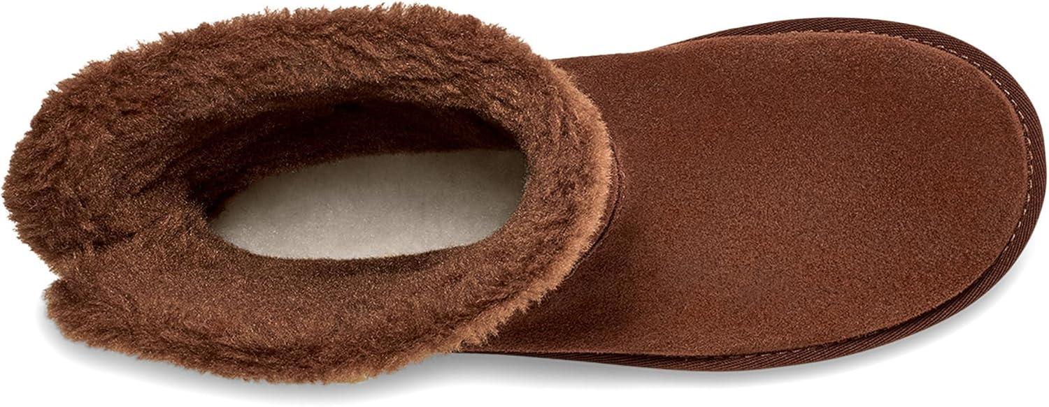 Cute as a button in this new short pull on boot. Offering the same warmth of the original, these boots are backed with big comfort, combining soft suede, faux fur, and an EVA outsole. Available in kid's sizes for a Mommy and me look.